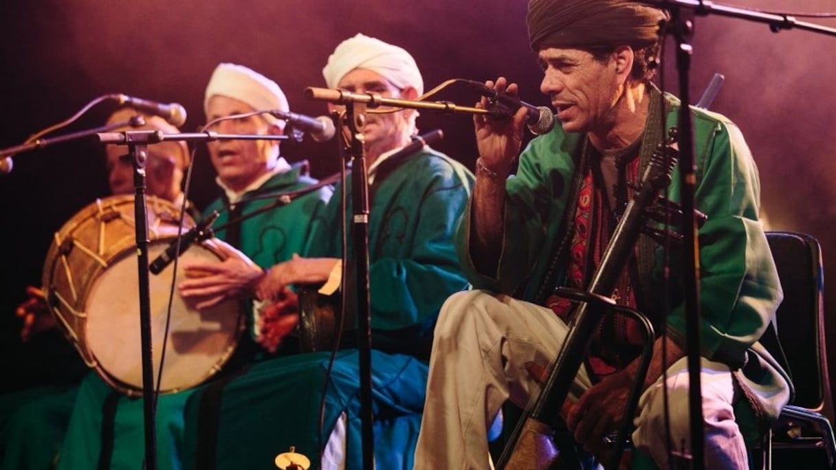 وفعلا، تكلمت الموسيقى ببلاغة، وبدأ الموسيقيون السبعة، الذين ارتدوا عمائم وأزياء مغربية تقليدية من جلالب خضراء ونعال صفراء، في تقديم موسيقاهم من خلال إعادة تركيب ذكي لأصوات أربعة من "الغياطة"، على إيقاع الدف، يرد على صداهما اثنان من الطبول الكبيرة.