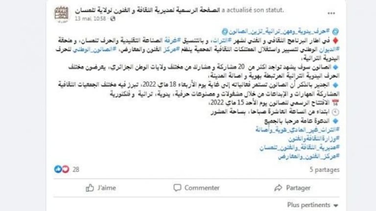 وأمام الجدل الذي ثار على مواقع التواصل الاجتماعي، ولكن قبل كل شيء الفضيحة الجديدة التي تتمثل في قيام الجزائر مرة أخرى بالسطو بطريقة فجة على تراث ليس لها، قامت الصفحة الرسمية لإدارة الثقافة والفنون في تلمسان التي أعلنت عن إقامة المعرض بنشر الملصق الدعائي... بكل بساطة بحذف الصورة من تدوينتها السابقة.