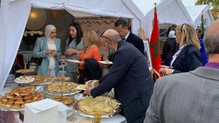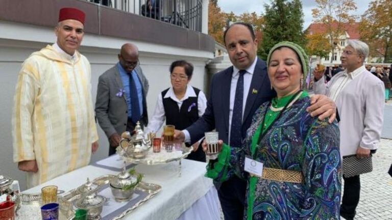 وفي إطار هذا الاحتفال الثقافي العربي، عرف رواق سفارة المملكة المغربية ببرلين، بحضور زهور العلوي سفيرة المغرب بألمانيا، إقبالا مهما، إذ تمكن زواره من التعرف على جوانب من الثقافة المغربية المتنوعة والغنية، والتقرب أكثر من خصوصياته في مجالات الصناعة التقليدية، الديكور المغربي الضارب في عمق الحضارة العربية، وأيضا فنون الطبخ من خلال تقديم أطباق من المطبخ المغربي، دون أن يغيب الشاي المغربي الذي أضفت عليه إيقاعات الموسيقى الكناوية المغربية التي صنفتها اليونسكو تراثا إنسانيا، أجواء روحانية استمتع بها الزوار من العرب والألمان.
