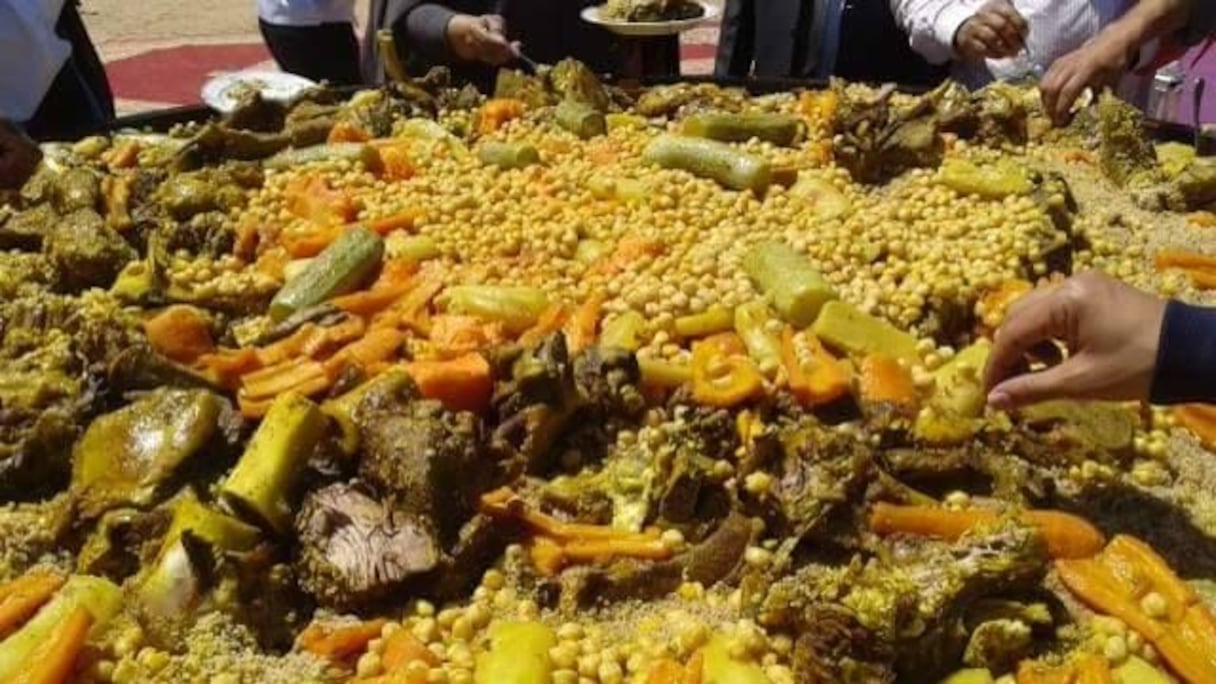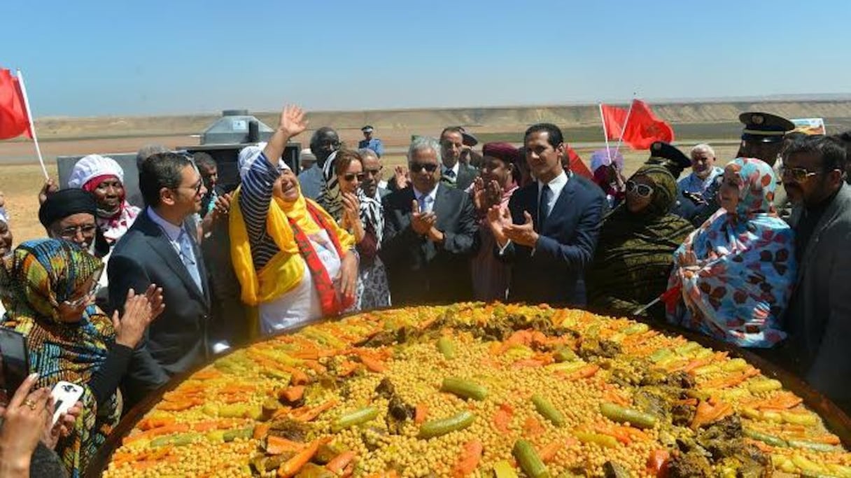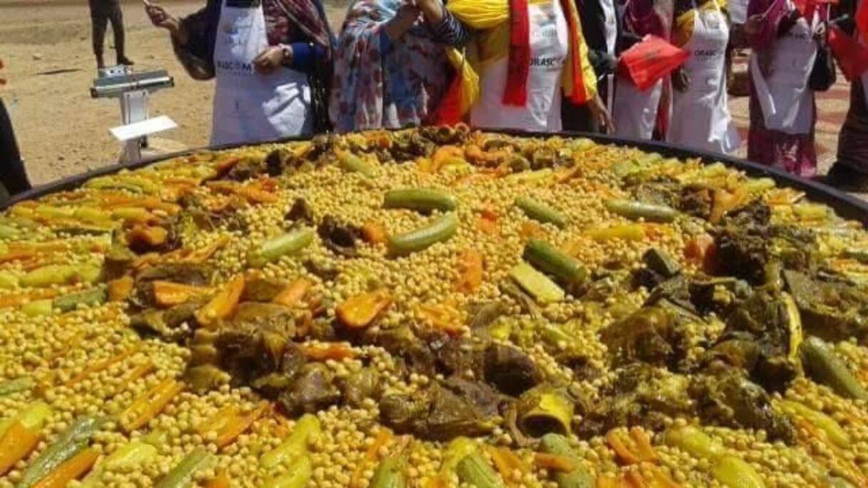 وأعدت أكبر قصعة كسكس، وفق بلاغ توصل Le360 بنسخة منه، أنامل نساء جمعية محلية بمدينة طانطان، وقدمتها أمس الجمعة للضيوف الذين حضروا الاحتفال، وعلى رأسهم عامل الإقليم.