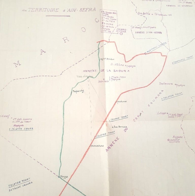 وبعد دمجها في المنظمة المشتركة للمناطق الصحراوية، أصبحت هاتان المقاطعتان، بعد اتفاقيات إيفيان، ورقة دبلوماسية في يد ديغول: الاعتراف بالسيادة الجزائرية للحفاظ على المصالح الفرنسية في باطن الأرض الصحراوية. ومع ذلك، تحتوي العديد من المجموعات الأرشيفية تحت أرقام «H30»، و«H31» و«H32» على ما يصل إلى 60 ألف وثيقة تتعلق بالمغرب -وهو دليل على إنكار صامت لمصدرها الحقيقي. وهكذا يجسد الأرشيف الخاص بالساورة والواحات الاستيلاء ما بعد الاستعمار، حيث يتم خلط التاريخ الترابي بالمنطق الإداري الفرنسي، مما يؤدي إلى تجميد الذاكرة لصالح الجزائر الموسعة.