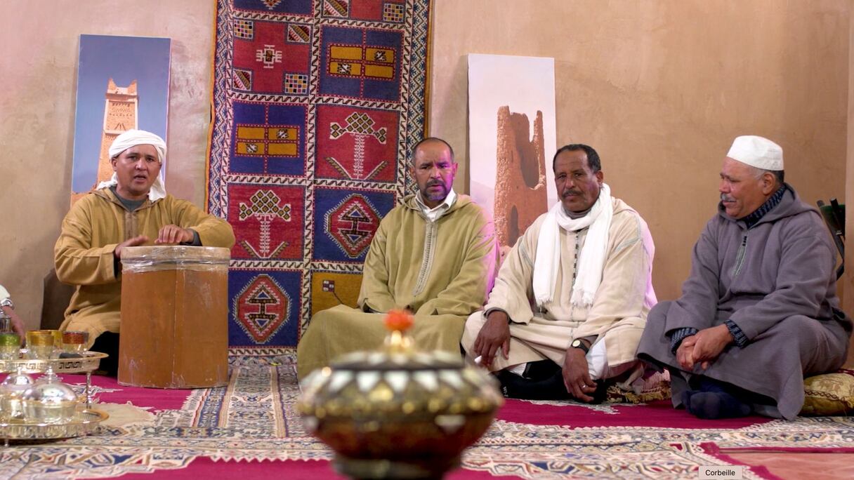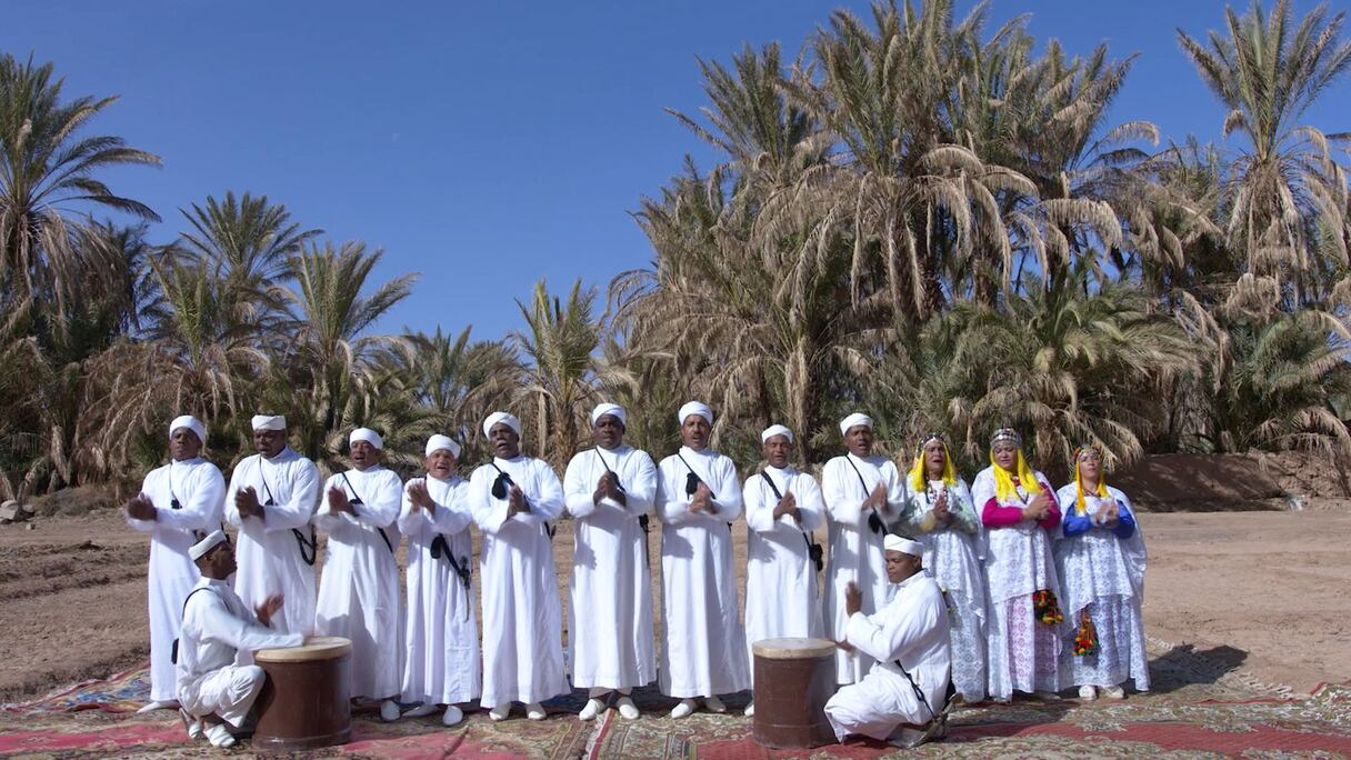 الوثائقي «فنون شعبية على ضفاف درعة»، استضاف فرقة المايسترو محمد القرطاوي التي أدت عرضها وسط نخيل إحدى الواحات المتواجدة على ضفاف وادي درعة وسط مدينة زاكورة.