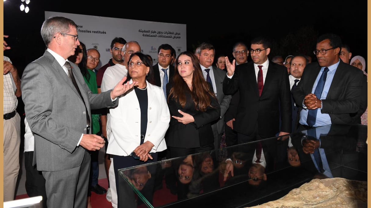 من جهته، أبرز مدير المعهد الوطني لعلوم الآثار والتراث، عبد الجليل بوزوكار، أن افتتاح هذا المعرض يعد مناسبة للاحتفاء بعودة واسترجاع مجموعة من العظام الحيوانية التي كان قد تم تهريبها بطريقة غير شرعية إلى كل من ألمانيا والولايات المتحدة الأمريكية والشيلي، مشيرا إلى أن هذه المستحاثات المستعادة تعتبر مهمة جدا لأنها تضم مجموعة من الكائنات الحيوانية المنقرضة، على غرار أنواع من الديناصورات والتماسيح وبعض الكائنات البحرية.