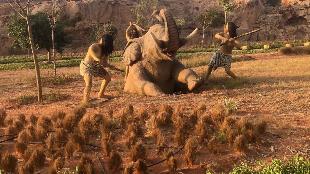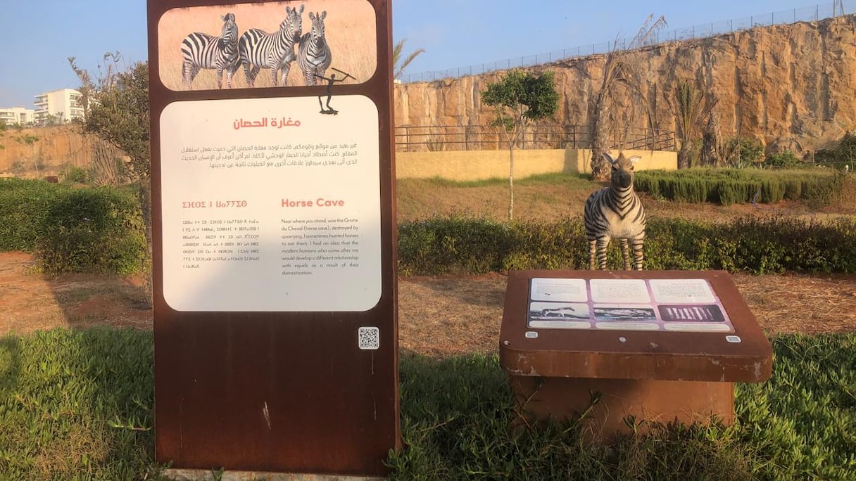 بمجرد عبور البوابة، يترك الزائر خلفه ضجيج حركة السير في الكورنيش، وفجأة يتوارى الحاضر. تظهر مجسمات لفيلة ذات أنياب مستقيمة، وحيد قرن صوفي وسط الأعشاب الطويلة، وحيوان سنوري ضخم بأنياب مرعبة.. لقد اكتمل المشهد. لم تعد على بعد خطوات من الشاطئ، بل صرت في قلب طبيعة كانت موجودة عندما كان أسلافنا الأوائل ينحتون الحجر في هذا الموقع الساحلي بالذات.