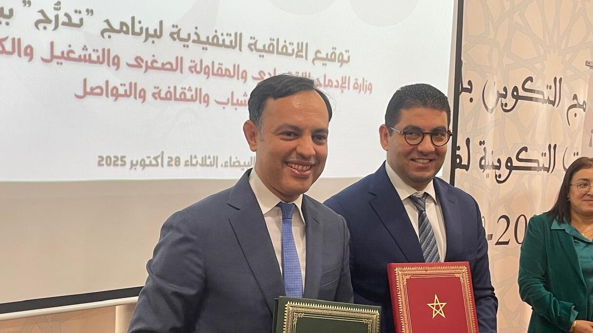 وحسب بلاغ صادر عن الوزارة، توصل Le360 بنسخة منه، فقد ترأس حفل توقيع الاتفاقية التنفيذية لهذه المرحلة كل من يونس السكوري، وزير الإدماج الاقتصادي والمقاولة الصغرى والتشغيل والكفاءات، ومحمد المهدي بنسعيد، وزير الشباب والثقافة والتواصل، بحضور عدد من المسؤولين المؤسساتيين الجهويين، وشركاء من القطاعين العام والخاص، وفاعلين في القطاع.