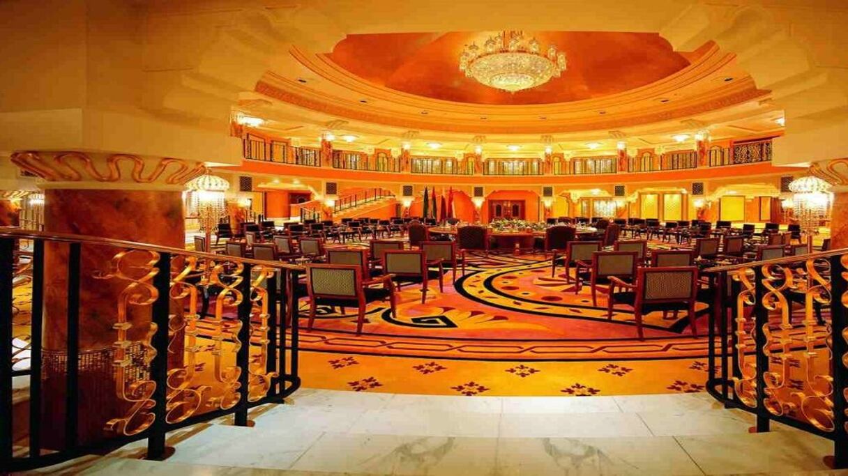 وتتحدث المرافق الفخمة عن الفندق وحدها مثل الديكور العربي المذهل، ورحلات الهليكوبتر، وأسطول من سيارات “رولز رويس” الفخمة، ومكتب استقبال في كل طابق، وخدمة متوافرة على مدار الساعة، وتأجير سيارات من طرازي “فيراري” و”لمبرغيني”.
