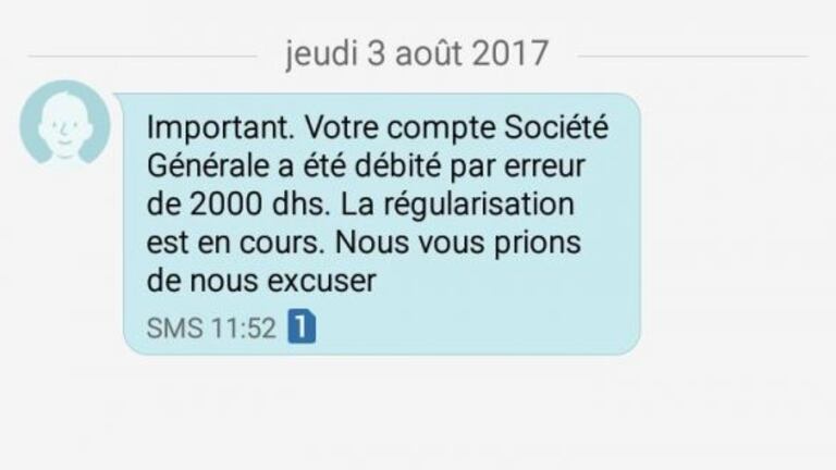 وعلم Le360 أن من وقع في حسابهم الغلط هم من يتوفر على بطاقة Déclic، والذين سحبت من أرصدتهم 2000 درهم وتوصلوا بالرسالة النصية أسفله.