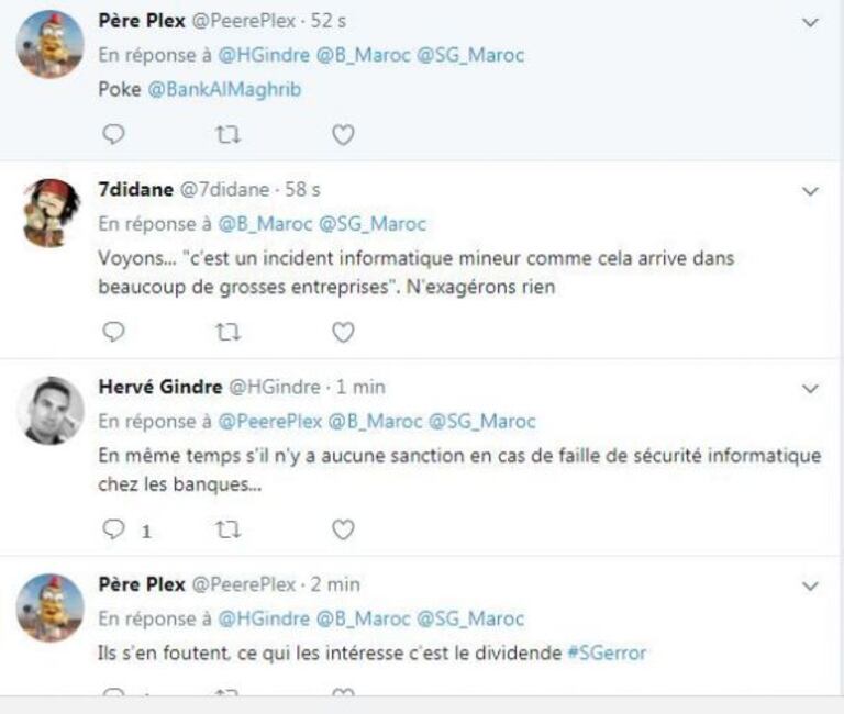 وخلف هذا المشكل سخطا كبيرا من زبناء الشركة، حيث تقاطرت التدوينات والتغريدات التي تحمل وسم الشركة المغربية العامة للابناك لاستفسار ما جرى، وخصوصا معرفة أجل إرجاع المبلغ إلى حساباتهم.