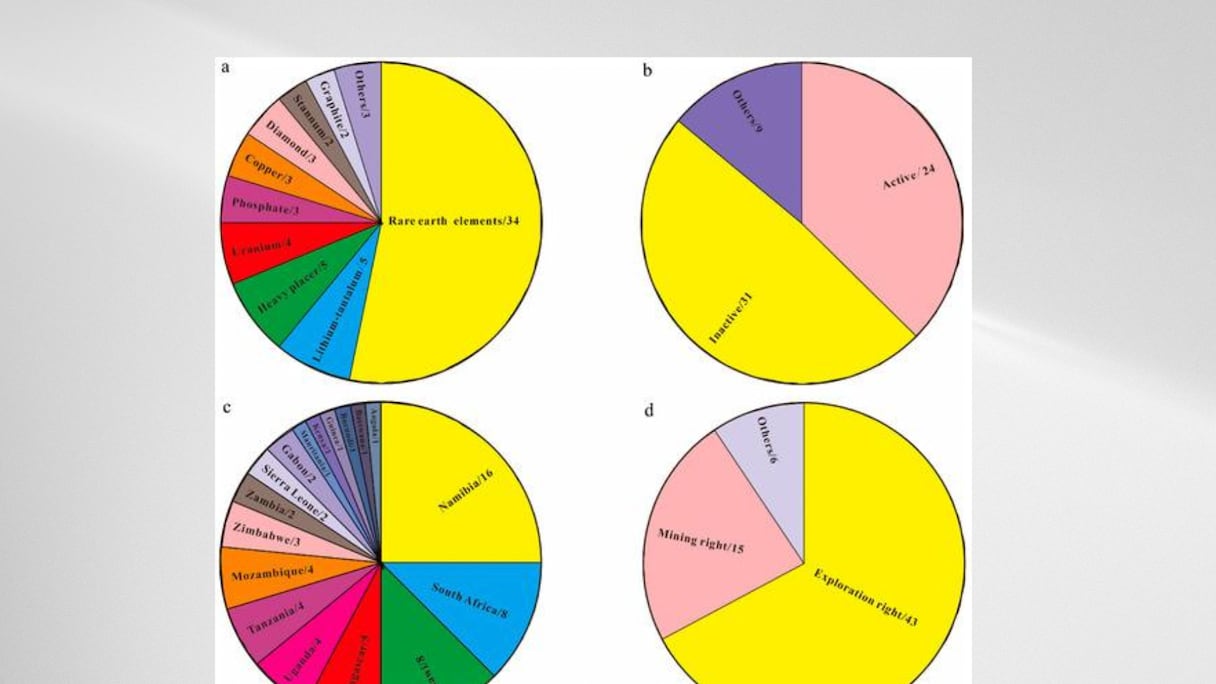 بعد أن ظلت إفريقيا لفترة طويلة على هامش سوق الأرضي النادرة، ترسخ مكانتها تدريجيا كفاعل استراتيجي في التحول العالمي في مجال الطاقة. ووفقا لتحليل متقاطع للتقارير السنوية حول «دراسة موارد الأرضية النادرة في إفريقيا»، الصادرة عن شركات التعدين الإفريقية المدرجة والمعطيات الجيولوجية المتوفرة في ماي 2023، تمتلك القارة 64 رواسب للأرضية النادرة، 34 منها تتكون أساسا من هذه المعادن.
