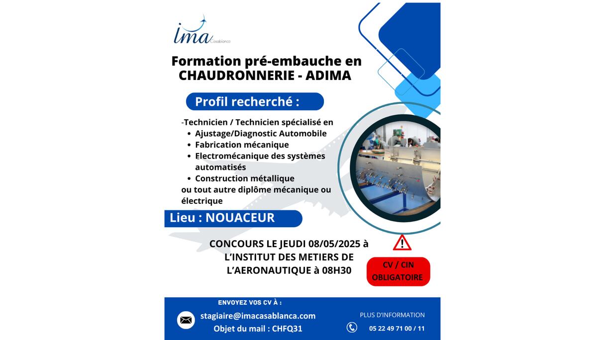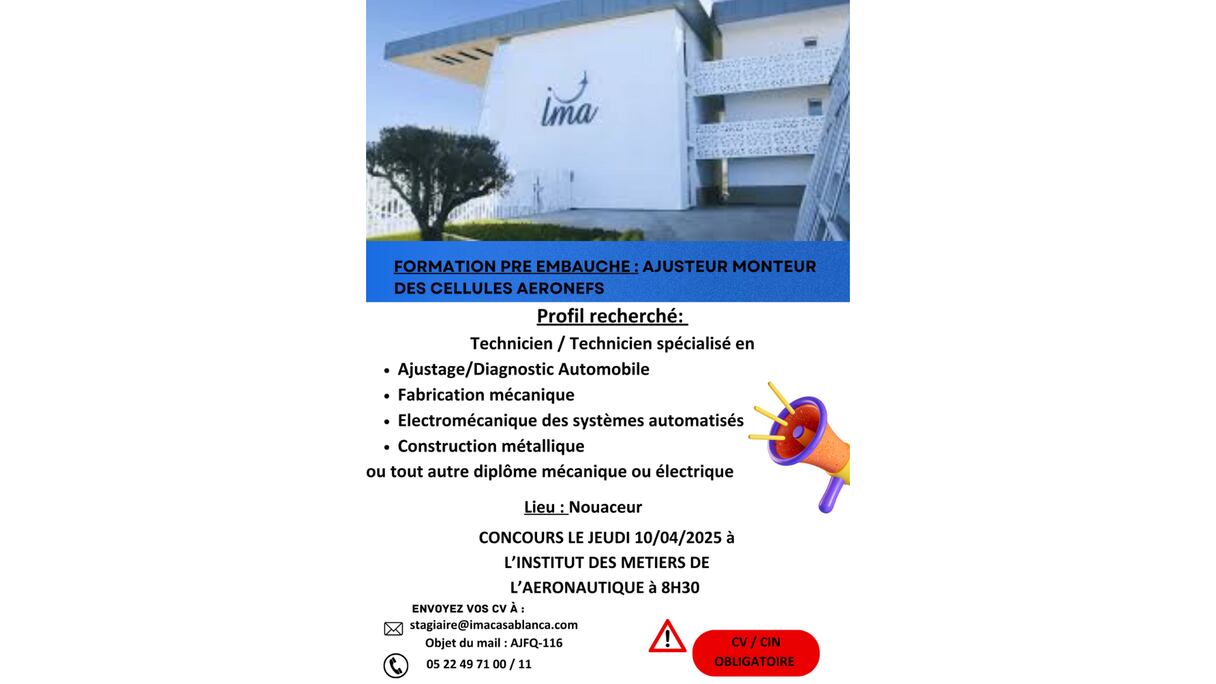 الساعة الثامنة صباحا في النواصر. حافلات بيضاء، مشابهة لحافلات شركات ميدبارك، وصلت إلى أبواب معهد مهن الطيران. ينزل الشباب واحدا تلو الآخر، هادئين ومركزين. جميعهم يرتدون سترات زرقاء. بعضهم ينحدر من فاس، والبعض الآخر من أكادير، أو مكناس، أو وجدة.