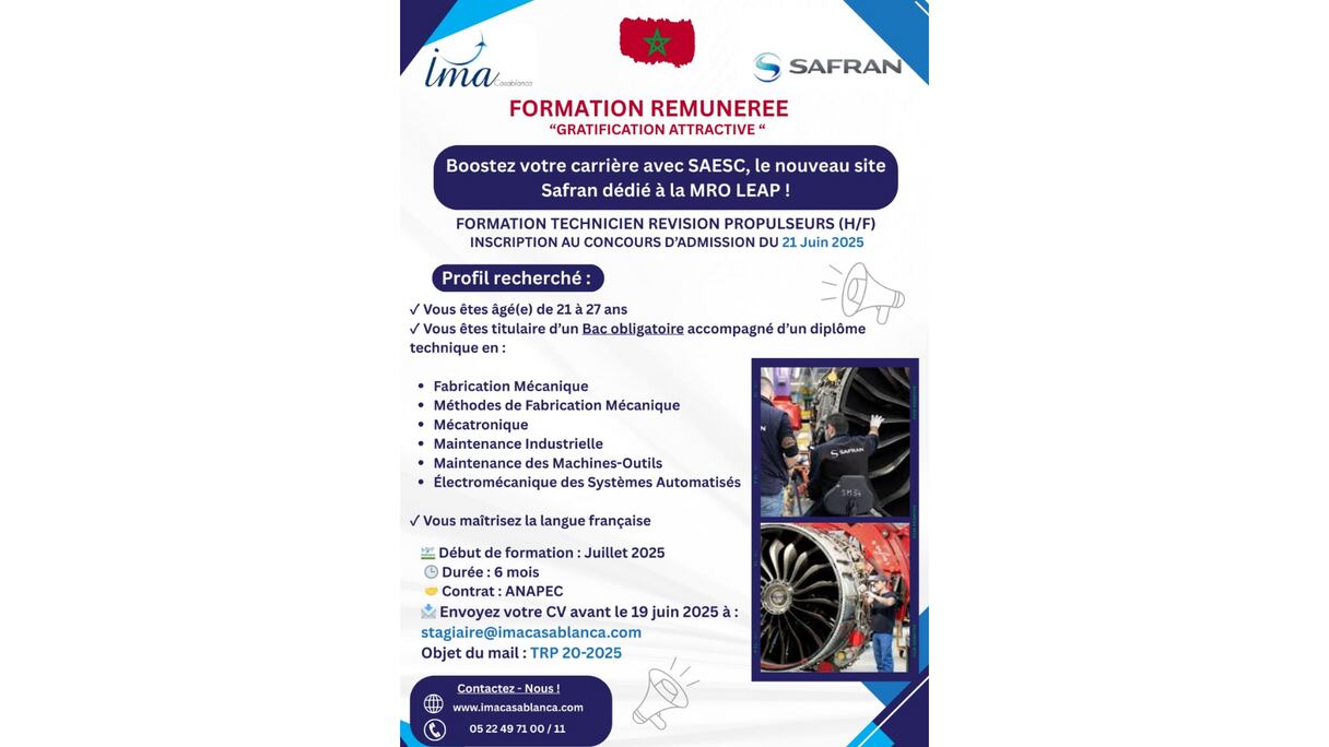 كما أكد عبد الحفيظ بوفتال، رئيس شركة سافران لخدمات محركات الطائرات بالدار البيضاء، على أهمية هذه الشراكة في تطوير المهارات المحلية. وأشار إلى أن «هؤلاء الشباب سيخضعون لبرنامج تكويني من خلال معهد مهن الطيران، يتضمن تكوينا نظريا وعمليا. ثم سيتم تدريبهم ضمن شبكاتنا المتخصصة في صيانة محركات الطائرات».
