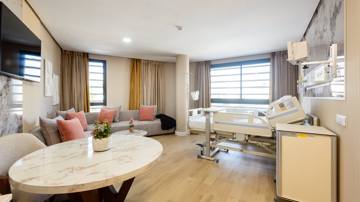 يتوفر المستشفى على منصة تقنية حديثة تضم 10 قاعات عمليات مجهزة بأحدث التجهيزات، منها وحدة تقنية خاصة بالولادة، وقاعتان مخصصتان للتنظير الداخلي، إلى جانب قاعة إفاقة بعد الجراحة تحتوي على 9 أسرة.