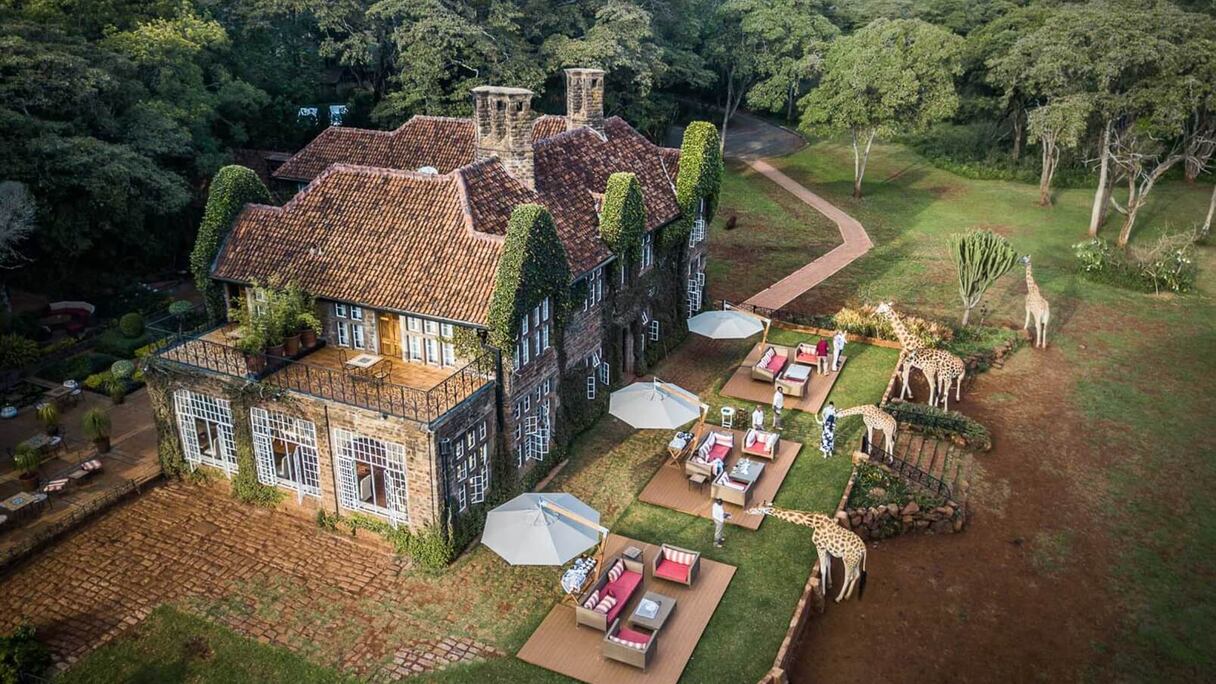 Photo du Giraffe Manor, destination de luxe du Kenya. Le pays d'Afrique de l'Est est le 5ème pays africain à compter le plus de destinations référencées dans le Forbes Travel Guide, avec un total de 3. Voici la liste complète des destinations du pays : Fairmont Mount Kenya Safari Club, a stately escape in the mountain’s shadows ; Fairmont The Norfolk, a historic Nairobi hideaway ; Giraffe Manor, a stately English manor with a safari twist.. DR