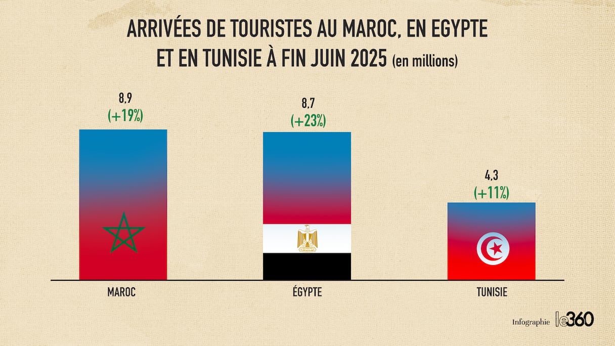 Les arrivées de touristes au Maroc, en Egypte et en Tunisie à fin juin 2025 (en millions).. le360 Afrique/Youssef