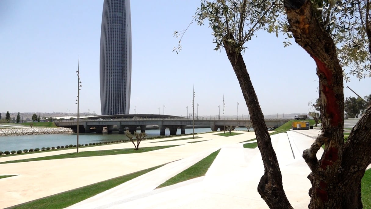 وتجري حاليا تهيئة فضاءين أخضرين قرب المدخل الرئيسي للبرج، سيضمان مساحات عشبية ومدرجات مصنوعة من الرخام، كما سيتم إضاءتهما ليلا بواسطة نظام إنارة حديث يُبرز جمال المكان.