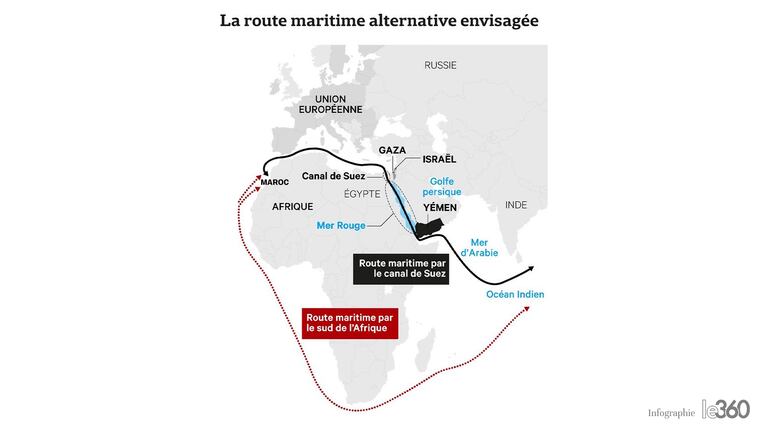 الحلول ليست سهلة بالنسبة للمهنيين. «لتجنب البحر الأحمر، يمكن لأصحاب السفن تحويل حركة المرور إلى رأس الرجاء الصالح، قبالة سواحل جنوب أفريقيا، الأمر الذي من شأنه أن يزيد مدة السفر بحوالي أسبوع»، يؤكد عبد الإله حفظي، رئيس جامعة النقل واللوجستيك المنضوية داخل الاتحاد العام لمقاولات المغرب.