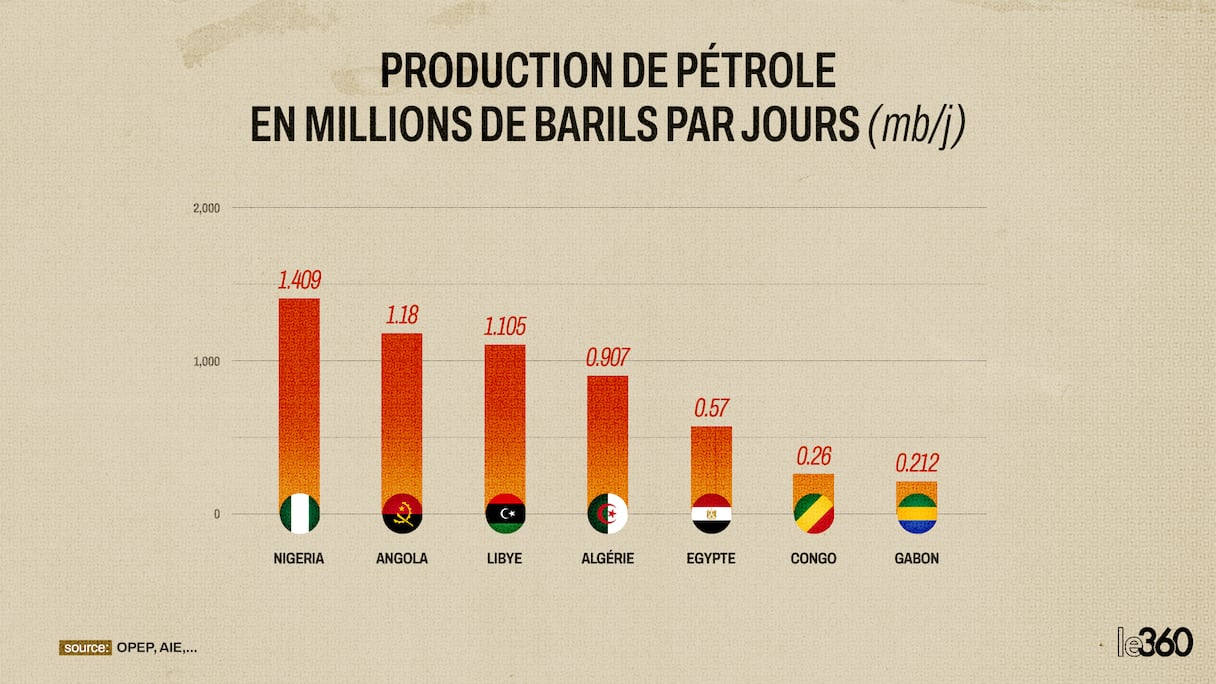 Les 7 premiers producteurs de pétrole africains en 2024, en millions de barils par jour.. le360 Afrique / Walid Belfkih