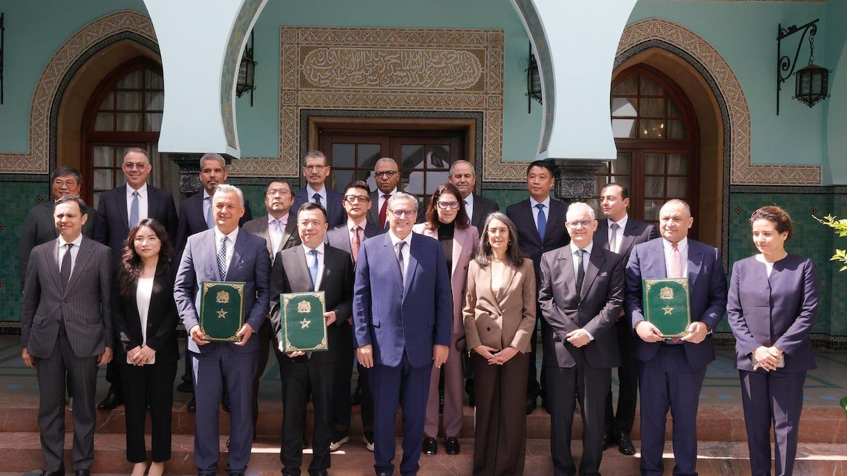وقد وقع على الاتفاقية من الجانب الصيني، لي شو، رئيس مجموعة « صنرايز »، وعن الجانب المغربي كل من وزير الداخلية عبد الوافي لفتيت، ووزيرة الاقتصاد والمالية نادية فتاح، ووزير التجهيز والماء نزار بركة، ووزيرة إعداد التراب الوطني والتعمير والإسكان وسياسة المدينة فاطمة الزهراء المنصوري، ووزير الإدماج الاقتصادي والمقاولة الصغرى والتشغيل والكفاءات يونس السكوري، ووزير التجارة والصناعة رياض مزور، ووزير التعليم العالي والبحث العلمي والابتكار عز الدين ميداوي، ووزيرة الانتقال الطاقي والتنمية المستدامة ليلى بنعلي، والوزير المنتدب المكلف بالاستثمار والتقائية وتقييم السياسات العمومية كريم زيدان، والوزير المنتدب المكلف بالميزانية فوزي لقجع، وبحضور المدير العام للوكالة المغربية لتنمية الاستثمارات والصادرات علي صديقي.