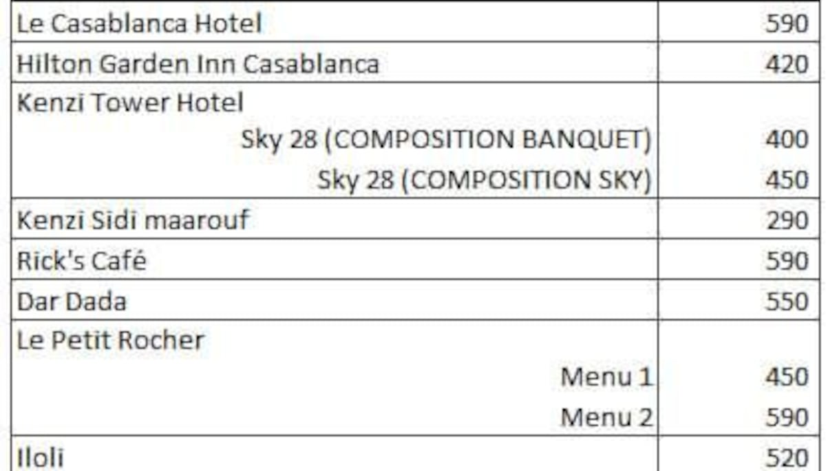 وكما ذكرنا سابقا، يبلغ سعر أغلى وجبة إفطار 1050، فيما يبلغ سعر «أرخص» وجبة في فئة «أشهر المطاعم الكازاوية»، 245 درهم.