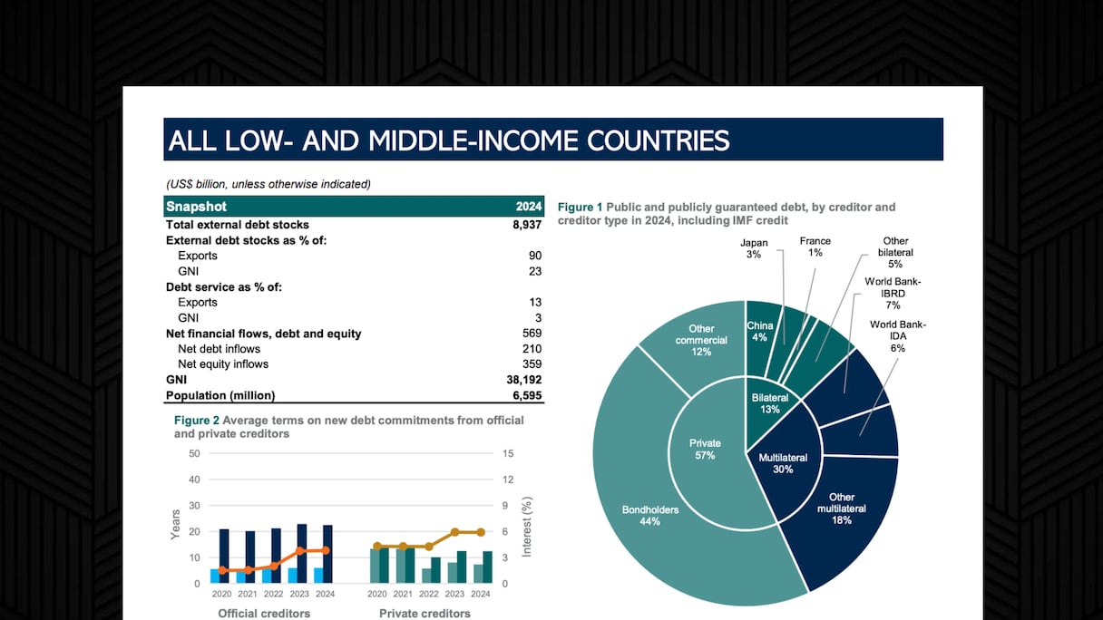 Le stock de la dette extérieure mondiale (hors pays de l'OCDE) s'est établi à fin 2024 à 8937 milliards de dollars.