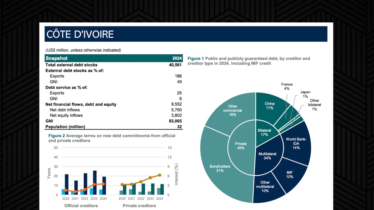 ومن أبرز الدائنين المتعددين الأطراف والثنائيين في القارة نذكر البنك الدولي، وصندوق النقد الدولي، وبنك التنمية الإفريقي، والصين... أما بالنسبة للديون الخاصة، فتهيمن عليها إلى حد كبير عمليات الاقتراض من سوق السندات الدولية.