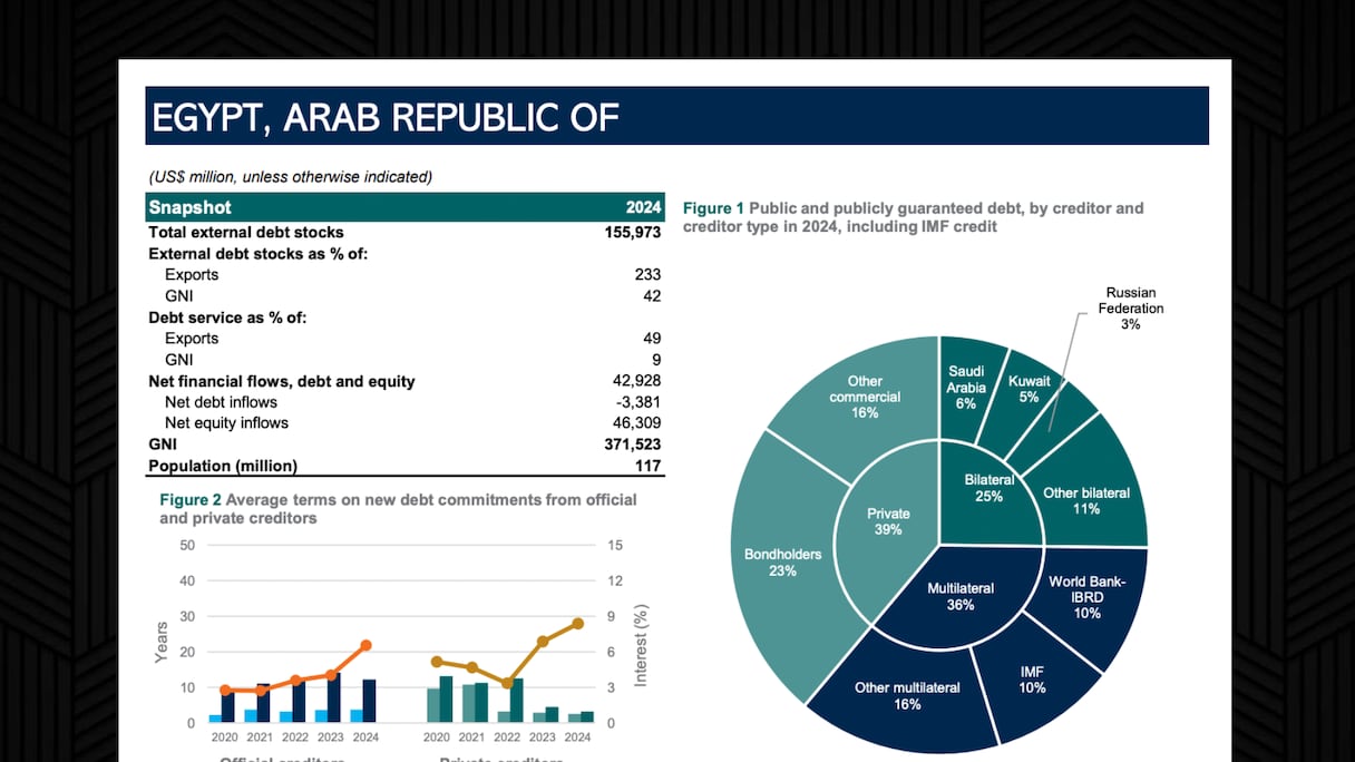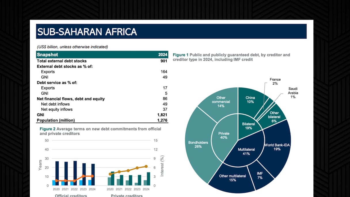 إضافةً إلى ذلك، لا يزال الدين الخارجي الأفريقي مركزا بشكل كبير في عدد محدود من الدول. وإجمالا، تستحوذ الاقتصادات الكبرى في القارة على الحصة الأكبر منه. من بين 1.200 مليار دولار من الديون المستحقة بنهاية عام 2024، يمتلك عشر دول فقط 808 مليارات دولار، وهو ما يمثل مجتمعةً أكثر من 80% من إجمالي ديون القارة الخارجية.