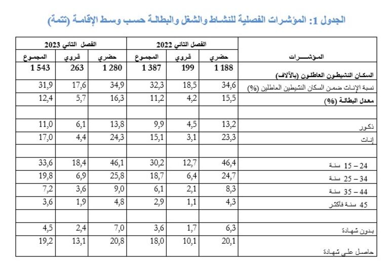 كما عرف حجم البطالة ارتفاعا بـ 156.000 شخص، نتيجة ارتفاع قدره 92.000 عاطل بالوسط الحضري و64.000 بالوسط القروي، ليبلغ عدد العاطلين 1.543.000 شخص على المستوى الوطني.