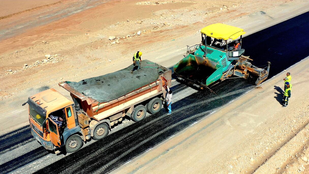 أشغال الطريق التكليمية الداخلة-الكركرات بالصحراء المغربية. سويلم بوعمود