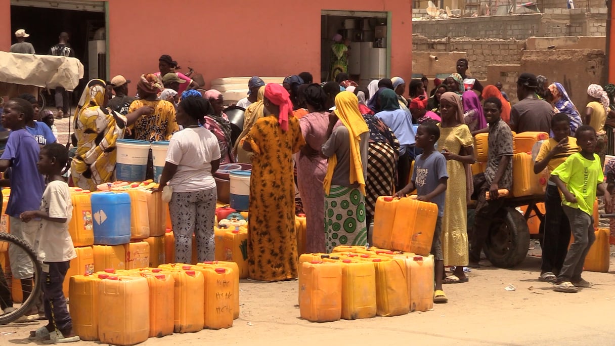 Des femmes et enfants avec des bidons à la recherche d'eau à Nouakchott.. A. Seck/Le360 Afrique