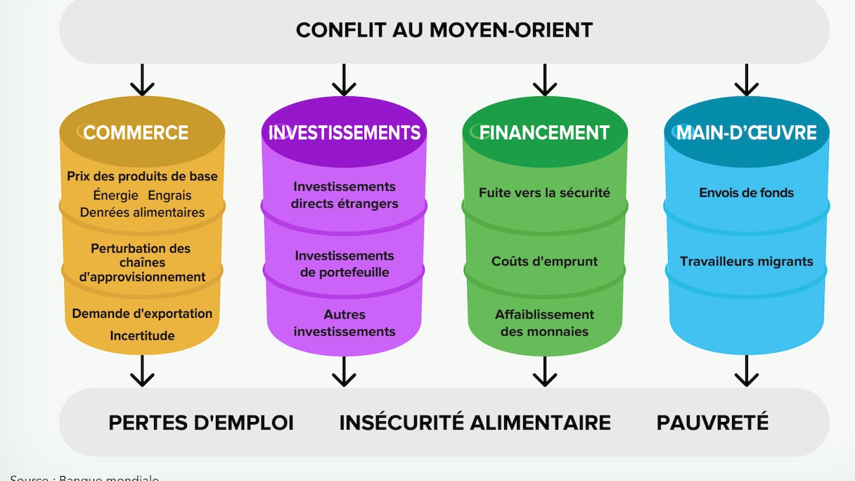 خلفت الحرب الدائرة في الشرق الأوسط بين الولايات المتحدة وإسرائيل وإيران آثارا سلبية على الاقتصاد العالمي، لا سيما في ما يتعلق بسلاسل الإمداد العالمية، وخاصة سلاسل إمداد المحروقات، وذلك في أعقاب حصار مضيق هرمز. أكد تقرير البنك الدولي، الصادر في أبريل 2026 بعنوان: «حالة الاقتصاد الإفريقي: تفعيل السياسات الصناعية في إفريقيا» أن «الصراع في الشرق الأوسط يفاقم أزمة الطاقة والغذاء للدول الإفريقية، في وقت تواجه فيه الحكومات بالفعل التزامات متزايدة بخدمة الديون، مما حد من قدرتها على مواجهة الأزمة أو تمويل أولوياتها التنموية».