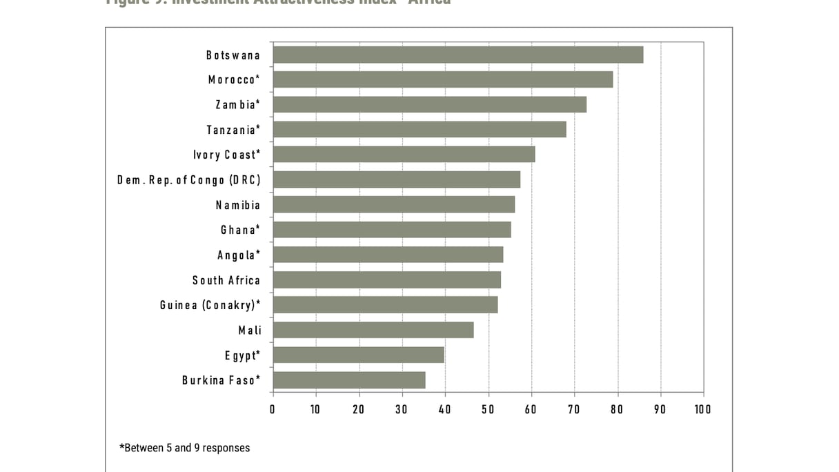 ويبقى أن نرى ما إذا كانت زيادة جاذبية الاستثمار في قطاع المعادن ستترجم إلى أرباح للدول الأفريقية العاملة في هذا القطاع. فالعلاقة بينهما غير واضحة. في الواقع، يعزى تصنيف مالي وبوركينا فاسو وغينيا إلى القرارات السياسية التي اتخذتها المجالس العسكرية الحاكمة في هذه الدول، والتي تشدد على السيادة الاقتصادية من خلال تطبيقها على قطاع المعادن.