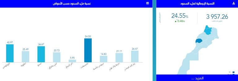 وحسب الإحصائيات والأرقام المحينة بتاريخ الاثنين 12 فبراير 2024، يبلغ الحجم الإجمالي لحقينة السدود المائية المغربية حوالي 3957.26 مليون متر مكعب، وهو ما يمثل نسبة 24.55 في المائة. بزيادة تقدر بـ0.46 في المائة مقارنة مع الـ24 ساعة الماضية.