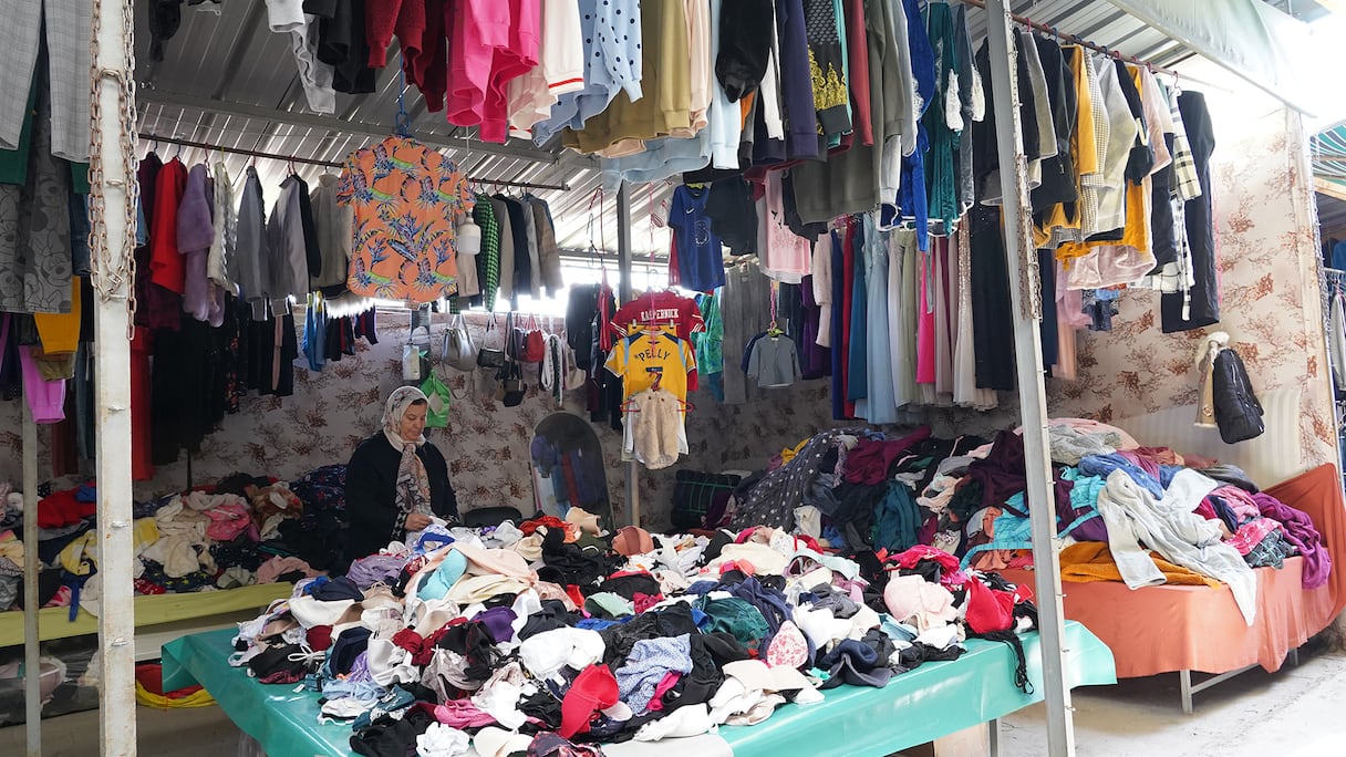 سعاد، بائعة منذ 25 عاما، تطوي فستانا مزينا بالورود بعناية. تضيء ابتسامة هادئة وجهها، على الرغم من التعب الواضح. تهمس قائلة: «لا نكسب الكثير، فقط ما يكفي للعيش».