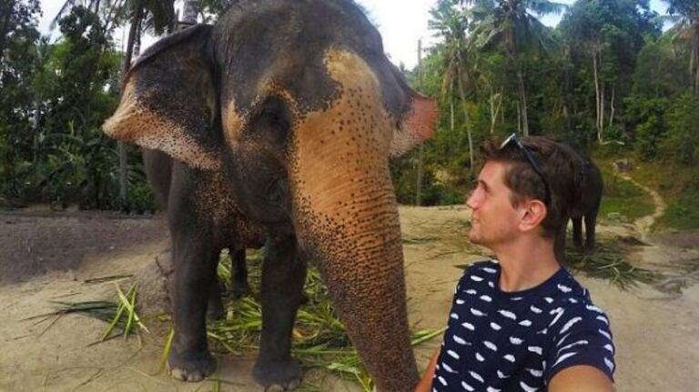 وبحسب صحيفة "ديلي ميل" البريطانية، كان السائح الكندي كريستيان لوبلان (22 عاما) يغري الفيل بالموز في إحدى حدائق الحيوانات في تايلند، أملا في تمكنه من التقاط صورة معه، غير أنه لم يكن يتوقع تجاوبا من قبل الفيل لدرجة التقاط هذه الصورة على طريقة السيلفي بواسطة خرطومه.