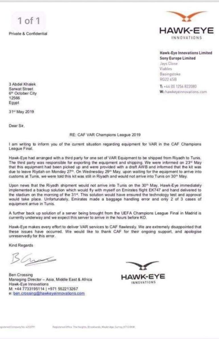وأكدت الشركة أن الكاف أقدم على هذا الأمر بالرغم من علمه بأن التقنية خارج التغطية، بسبب عدم وصول شحنة قطاع الغيار المخصصة للفار، من مطار الرياض بالسعودية، إلى مطار تونس في التاريخ المحدد بين 28 و30 ماي.