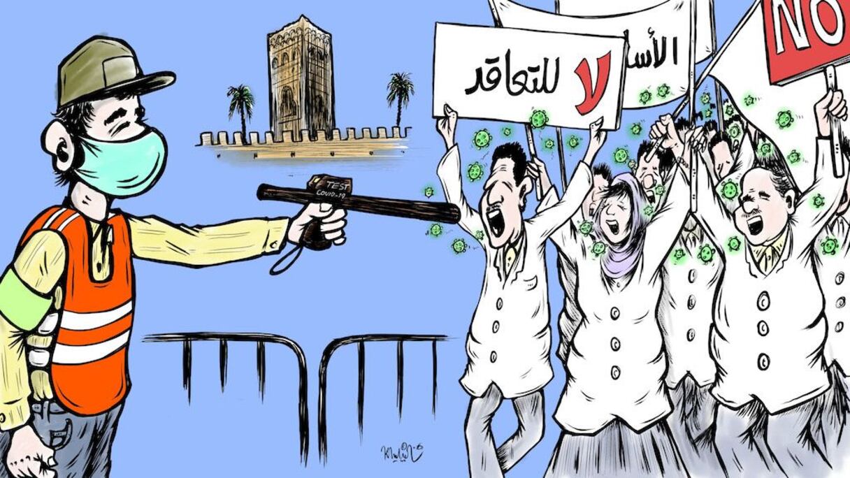 كاريكاتير: الأساتذة المتعاقدون يعودون للاحتجاج بشوارع الرباط