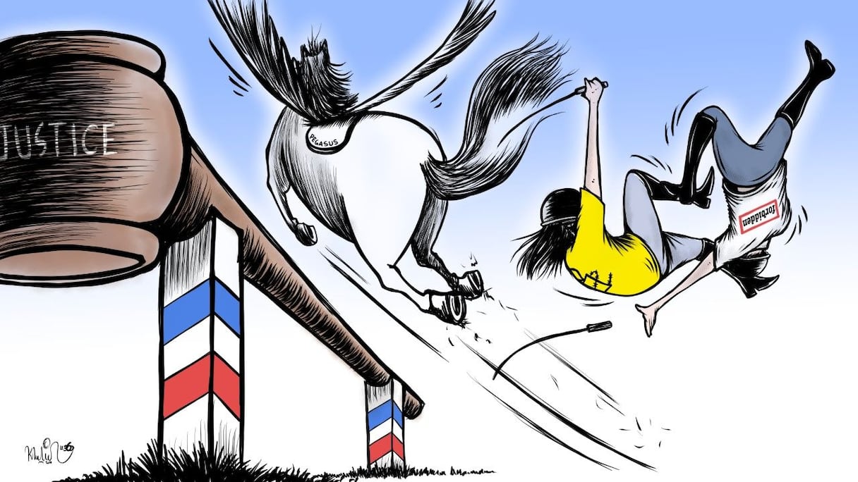 قرر المغرب، المتهم، بدون أدلة، بـ"استخدام برنامج التجسس بيغاسوس"، مقاضاة منظمة العفو الدولية (أمنستي) وفوربيدين ستوريز بتهمة التشهير، أمام القضاء الفرنسي، بحسب ما أعلنه محاميه يوم الخميس 22 يوليوز 2021 في بيان نشرت مضامينه وكالة "فرانس برس". (كاريكاتير).
