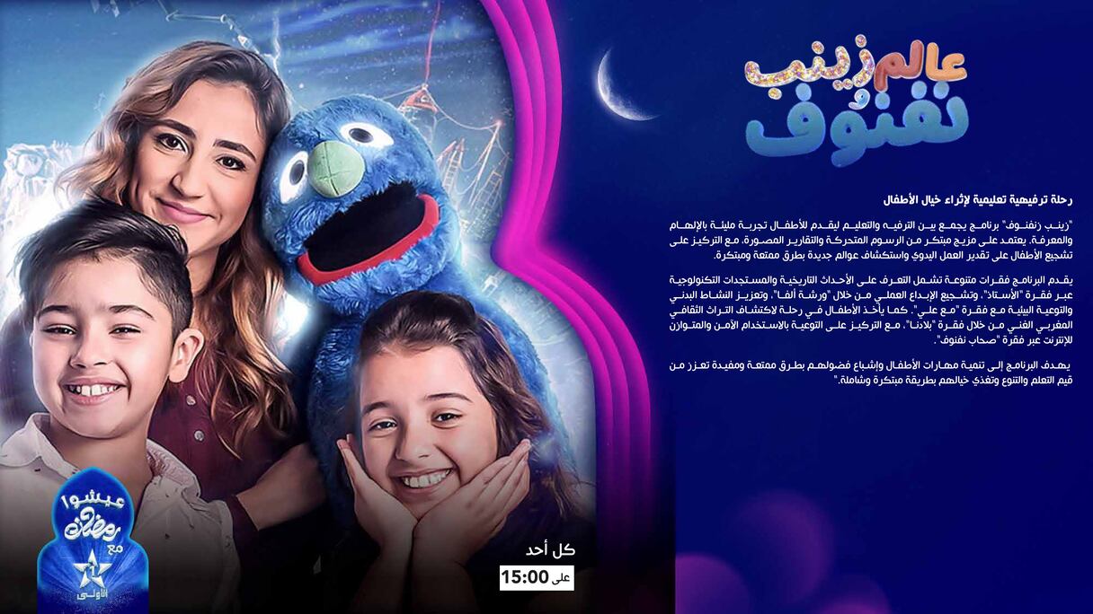 وفي إطار دعمها للمواهب الصاعدة، تتيح القناة الأولى للشباب فرصة التألق من خلال برنامج « وليدات بلادي »، وهو منصة تفاعلية لاكتشاف وإبراز المواهب المغربية. كما تقدم للأطفال برنامج « زينب ونفنوف »، الذي يهدف إلى تنمية مهاراتهم وإشباع فضولهم بأسلوب تعليمي ممتع.