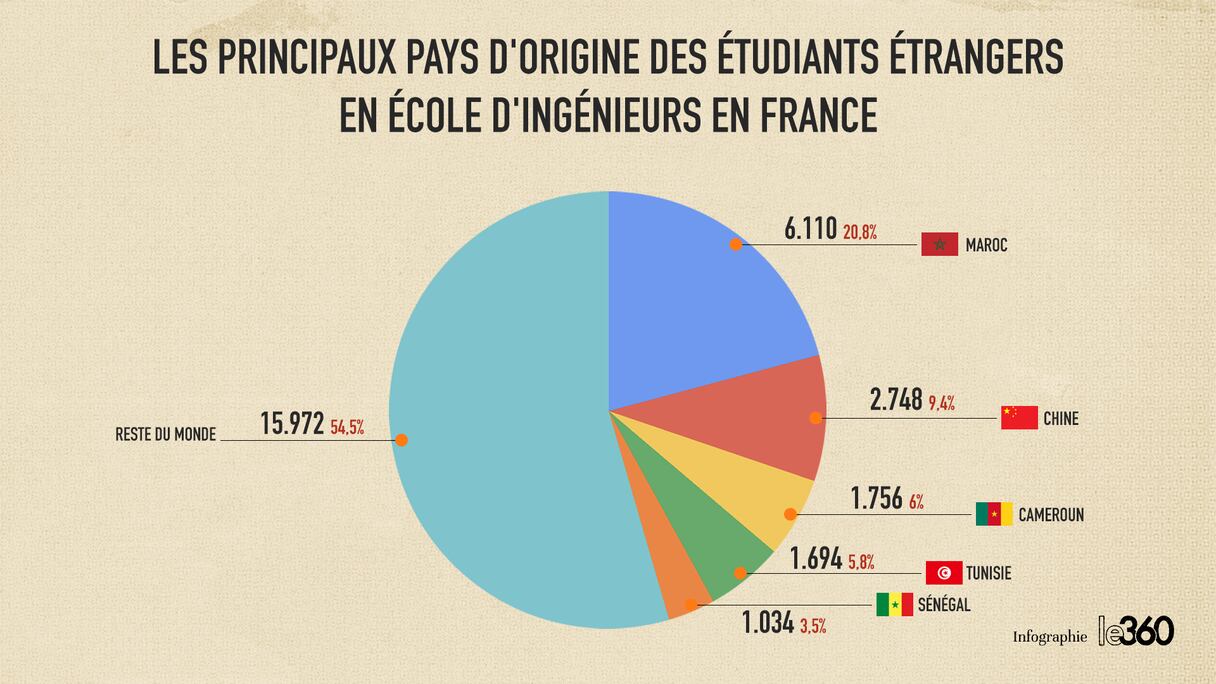وهكذا، فإن 31.40 % من الطلاب المغاربة الذين يتابعون دراستهم العليا في فرنسا مسجلون في مدارس الهندسة والتجارة. تفعل الكاميرون أفضل بكثير حيث يتابع 42 % من طلابها في فرنسا دراستهم في الهندسة والتجارة.