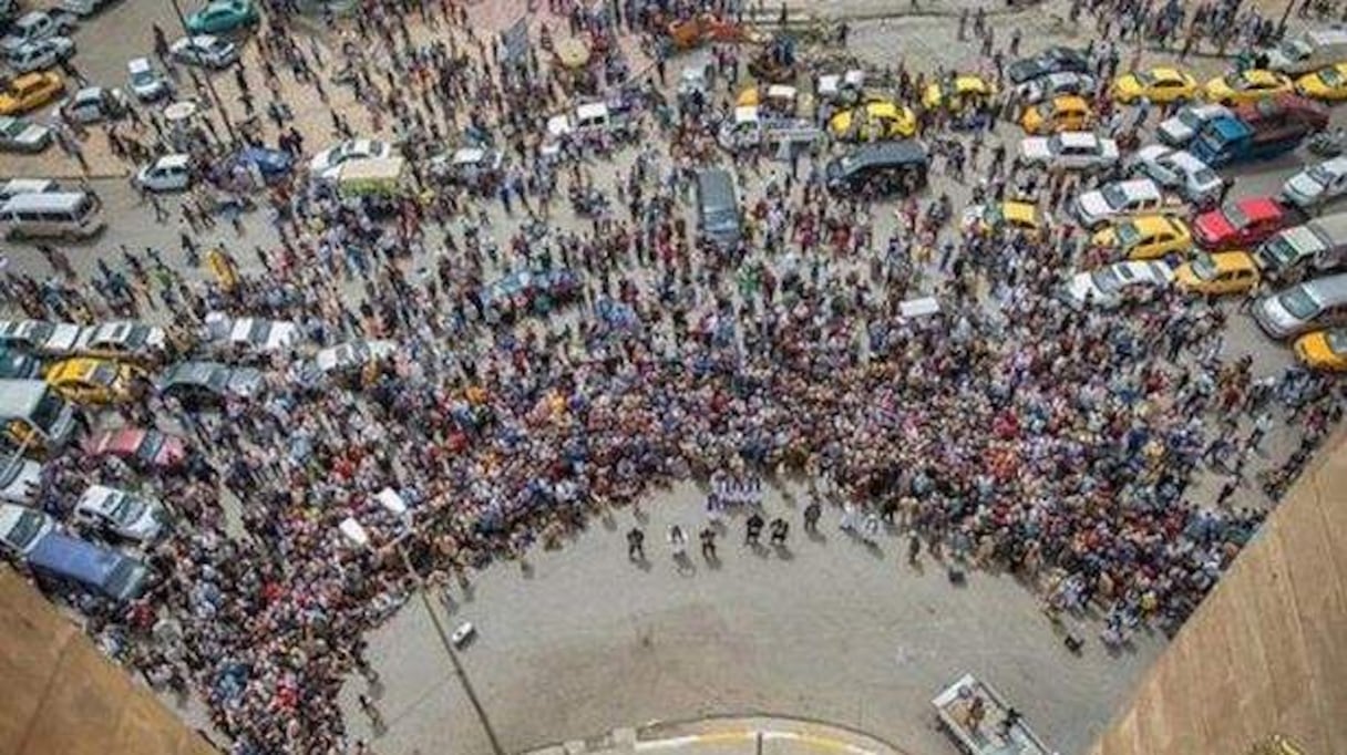 وبدا في الصور توقف سيارات المواطنين في وسط الطريق لمشاهدة الطريقة المروعة للإجهاز على المواطنين الثلاثة بالحجارة في حال بقاء أحدهم على قيد الحياة بعد سقوطه من أعلى المبنى المرتفع.