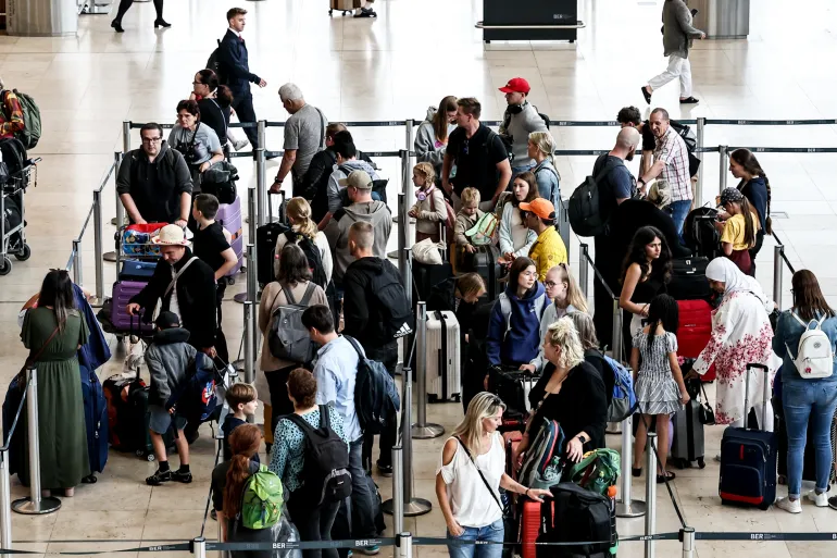 وكان مطار العاصمة الألمانية من بين أكثر المطارات المتضررة، حيث دعا المسافرين إلى إتمام إجراءات تسجيل الوصول عبر الإنترنت واستخدام الأكشاك الذاتية لتسليم الأمتعة كلما أمكن.