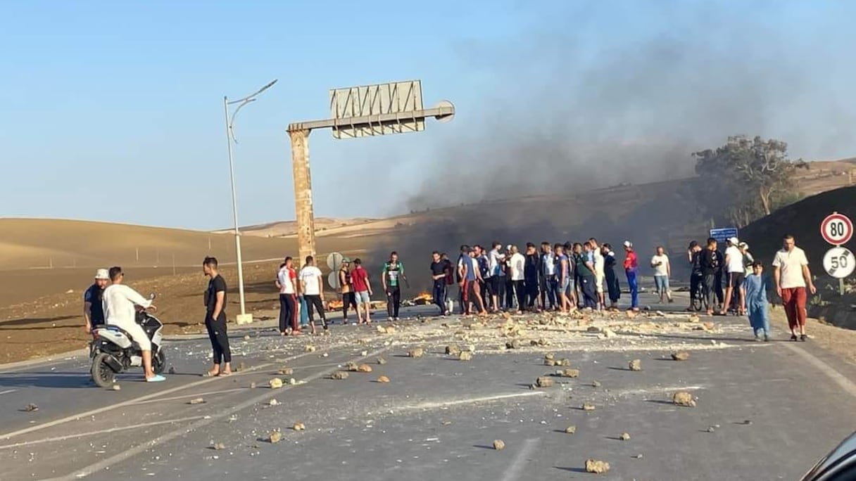 وأشارت المصادر خاصة إلى الطريق الوطني رقم 14 بين فرندة ووسط مدينة تيارت، كما أظهرت الصور وضع أحجار ومتاريس لمنع مرور السيارات.