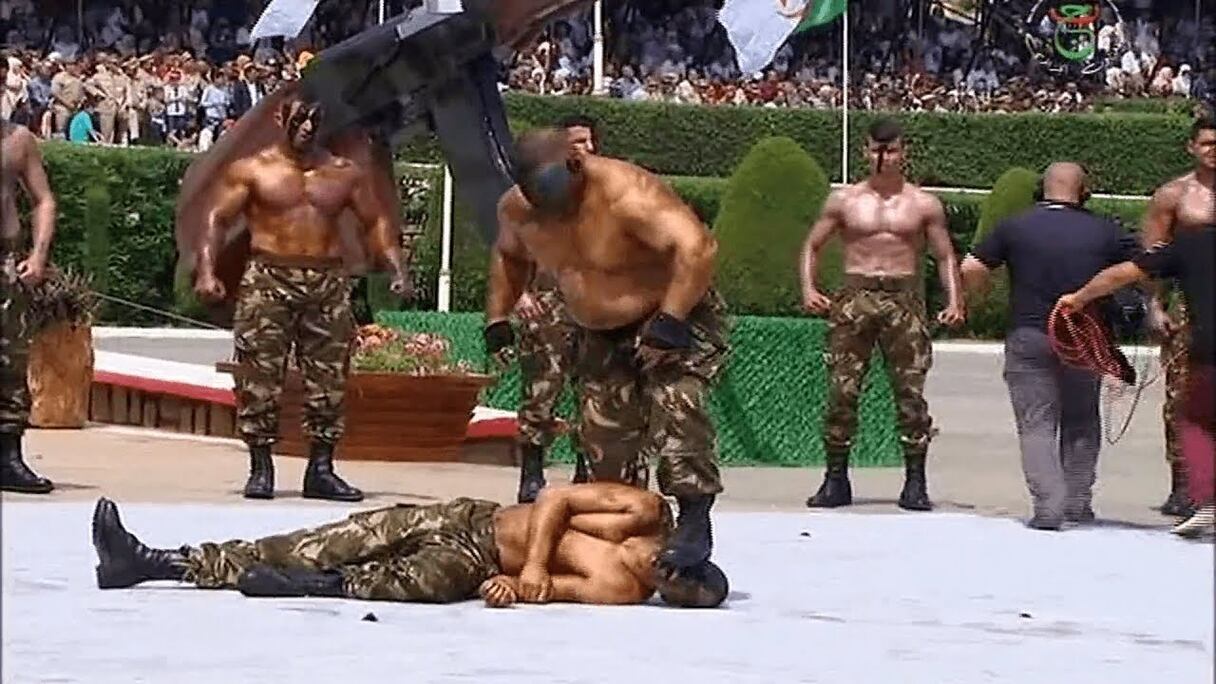 في عصر الذكاء الاصطناعي الناتج عن التطور المذهل لتقنيات المعلومات، وحيث تخاض الحروب الآن بـ »صفر جندي » في الميدان، لا يزال الجيش الجزائري منخرطا في استعراضات القتال بالأيدي التي عفا عليها الزمن، حيث يتم عرض العضلات المنتفخة والصدر العاري المطلي بالزيت كعلامات من علامات القوة.