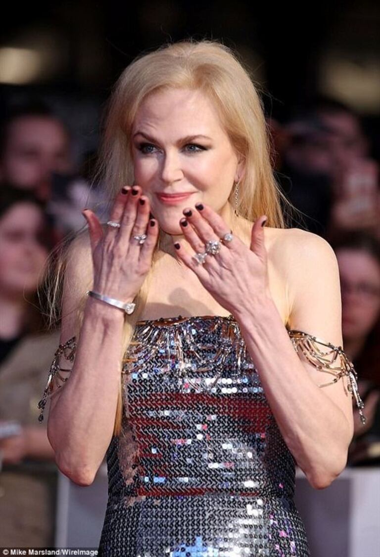 وظهرت التجاعيد بشكل ملف على النجمة الأسترالية، خاصة في منطقة اليدين، حيث بدت يديها مليئة بالتجاعيد رغم العناية الكبيرة التي أولتها ليديها.