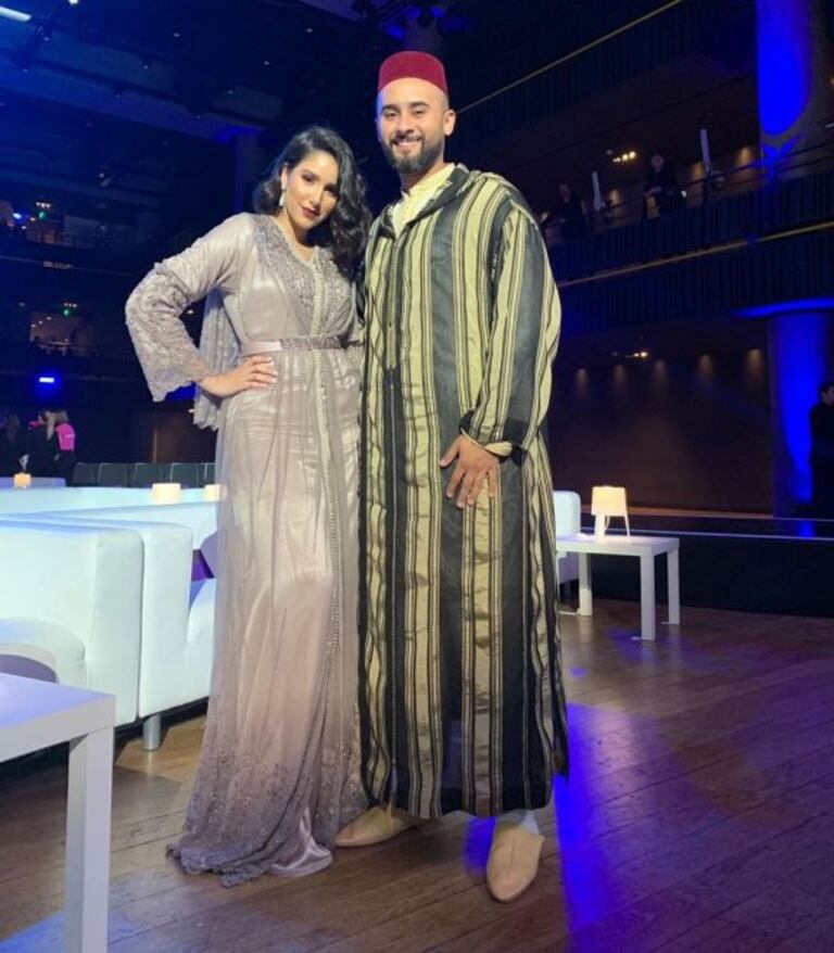 وارتدى زوجها الجلباب والطربوش المغربي، ليكون هذا الثنائي قد تألق في هذه المسابقة العالمية بإطلالة مغربية مائة في المائة.