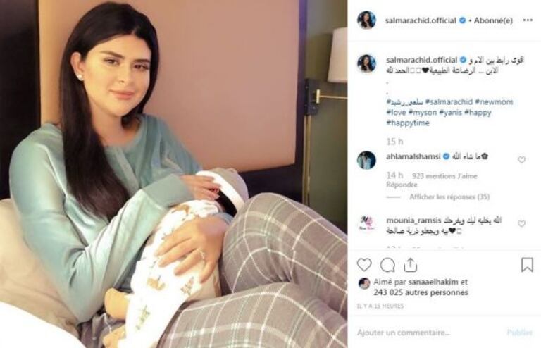 وعلقت سلمى على الصورة قائلة: " أقوى رابط بين الأم والابن هو الرضاعة الطبيعية، الحمد لله".