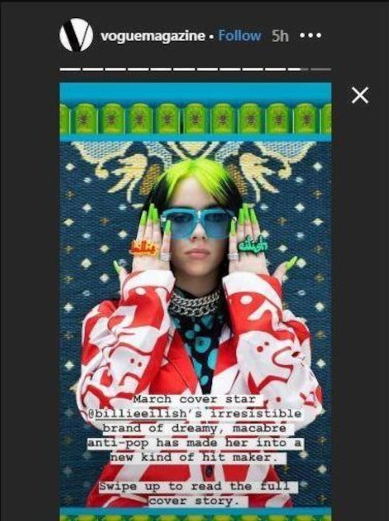للإشارة، فإن بيلي ايليش (19 سنة) تعد من بين أكثر النجمات نجاحا في الولايات المتحدة الأمريكية هذه السنة، لا سيما بعد اكتساحها لجوائز حفل "غرامي"، بفوزها بأربع جوائز كبرى وهي أفضل ألبوم وأغنية وتسجيل خلال العام، وأفضل فنانة صاعدة، بالإضافة إلى جائزة أفضل ألبوم لأغاني البوب.