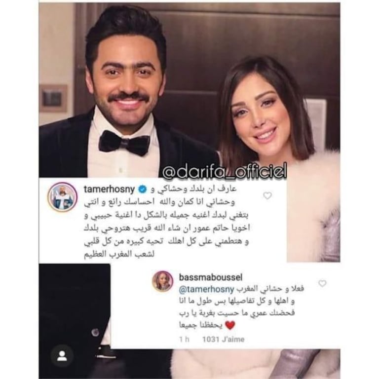 وعلق تامر حسني على الأغنية بصوت زوجته بسمة قائلا: "عارف ان بلدك وحشاكي ووحشاني انا كمان والله احساسك رائع وانتي بتغني لبدك اغنيه جميله بالشكل دا اغنية حبيبي واخويا حاتم عمور ان شاء الله قريب هتروحي بلدك وهتطمني على كل اهلك تحيه كبيره من كل قلبي لشعب المغرب العظيم".