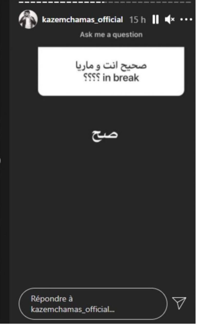 وأعلن كاظم الخبر من خلال الرد على أسئلة متابعيه، حيث كان أحد الأسئلة حول حقيقة انفصاله عن ماريا، فرد بعبارة "صحيح".
