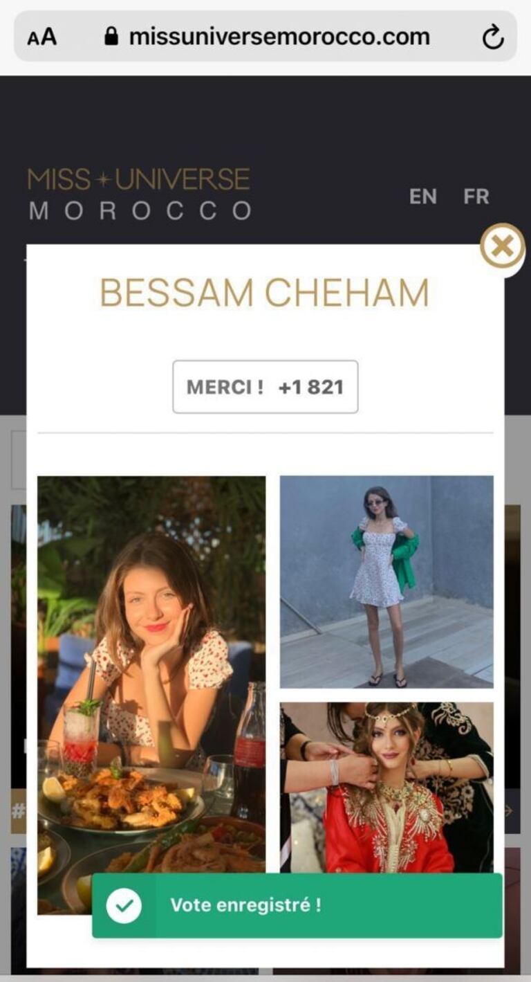 وتابعت: "عندما علمت بإقامة مسابقة ملكة جمال الكون المغرب، وهي مسابقة ستخول للفائزة تمثيل المغرب في مسابقة ملكة جمال الكون، تحمست للفكرة، وقلت إن هذه المرة ستكون المسابقة بمعايير عالمية، وبالتالي سيكون هنالك نوع من الشفافية والمصداقية في اختيار المرشحات".